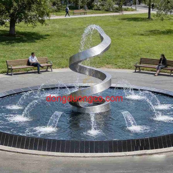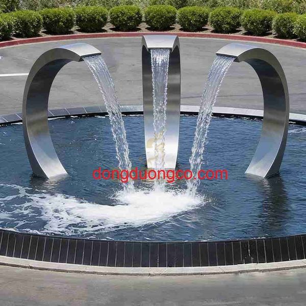 Đài phun nước vòng inox nghệ thuật hiện đại của Công ty Đông Dương là sự kết hợp tinh tế giữa hình học đương đại và chuyển động mềm mại của nước. Lấy hình vòng tròn và các đường cong uốn lượn làm ngôn ngữ thiết kế chủ đạo, sản phẩm mang đến một tổng thể hài hòa giữa tính điêu khắc và hiệu ứng nước sống động.