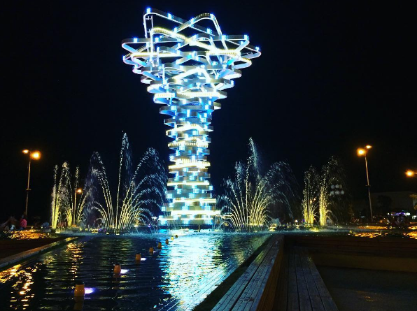 Tổ hợp đài phun kết hợp Sàn phun tại KĐT Phú Cường Kiên Giang
